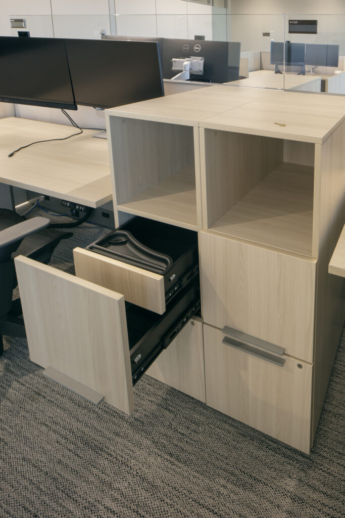 This US engineering and construction company transformed their office space into a haven of productivity and comfort. The previous perimeter offices and dark finishes no longer aligned with their vision for a vibrant and welcoming workplace. Studies show that the way we design our workspaces directly impacts employee satisfaction, engagement, and retention. By prioritizing a light, updated, and enjoyable environment, a company can foster a culture of productivity and loyalty, ultimately driving long-term success. Houston based Debner Co and Independent Representative W Group, engaged BRC Group ensuring that the furniture solutions aligned with the client’s unique vision and needs.